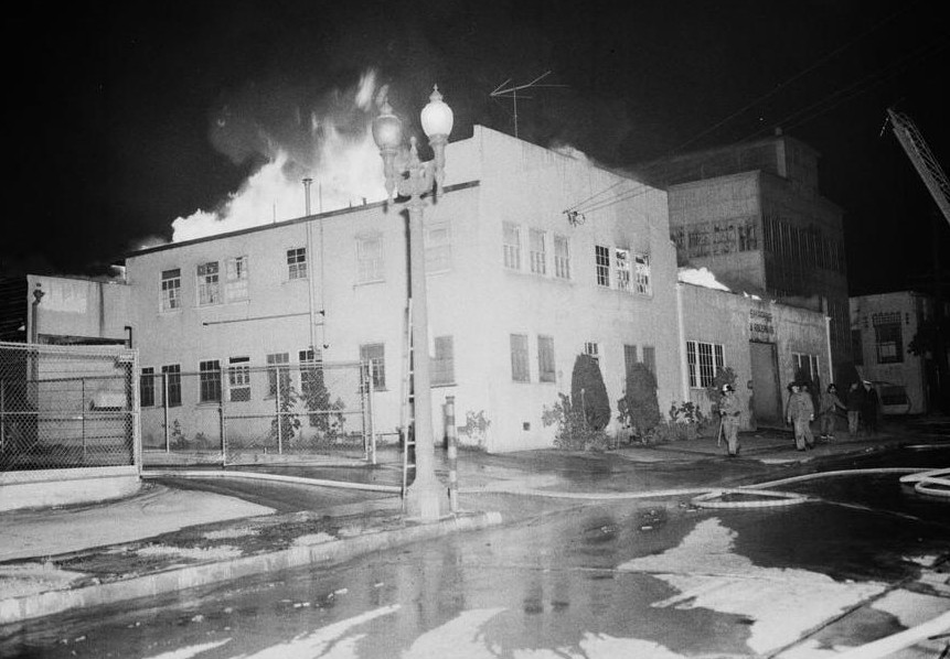 Mitchell Camera decided to move to Glendale after the war in 1946. The West Hollywood factory then became the Veteran Salvage Depot, a processor of military salvage. There is little on record about this facility, but it made the LA Times in 1951 when a fire damaged it and adjacent factories. The building subsequently became a furniture factory but was abandoned sometime in the 1960s. In 1967 the factory finally said goodbye to its life as a factory proper and became “The Factory,” a buzzing center of the Los Angeles club scene.