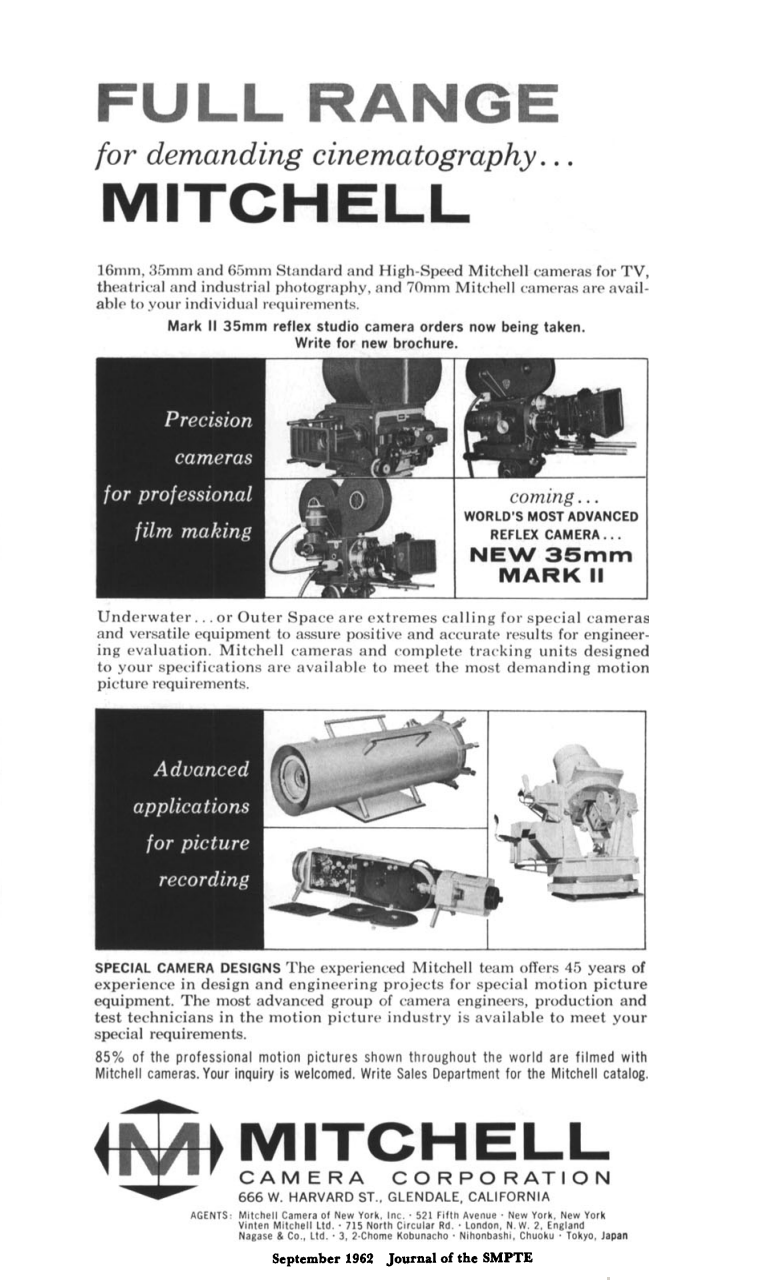 When the Mark II variant arrives, the product is re-launched in ads as a more modern Mitchell studio camera and the hand-held feature fades into the marketing background. The later System 35 re-launch in the mid 1960's solidifies this direction as a complete studio system.