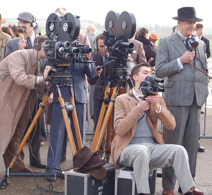 As can be seen from my photograph, 1950s newsreels used a mixture of Wall, 2709s and Spyder Eyemo cameras plus W.E. 618 mics. The crews look very neat and tidy with additional trilby hats. The whole ensemble courtesy of myself and the NETFLIX costume dept. This was all for a Netflix production called THE CROWN (streaming Nov 2016). Although I collect and preserve movie and tv equipment, I just love it when I trundle along to the set and display my precious toys. Oh, and the 2709 is a wooden repro, same guy who made all my model cameras. A whizz!