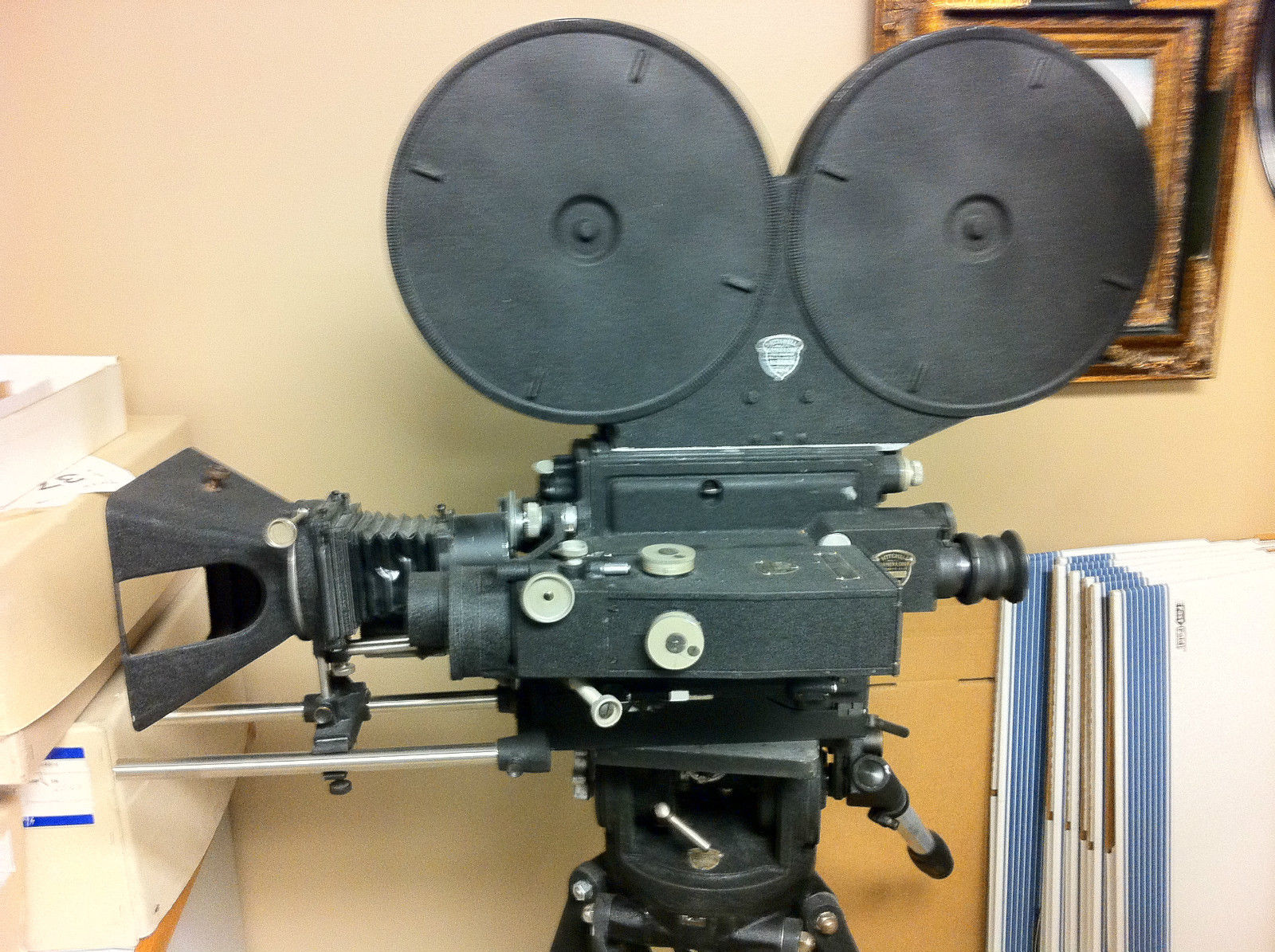 If you were in the Newsreel business the Model SS was unique as it was able to record optical sound and picture in sync all on one strip of Negative film. This specimen does not include the Galvo or Record Amplifier and was used as a Studio and Location Camera during its life. It Does still contain the Sound Drum and could be completed as a Sound Camera should you desire to do so.
