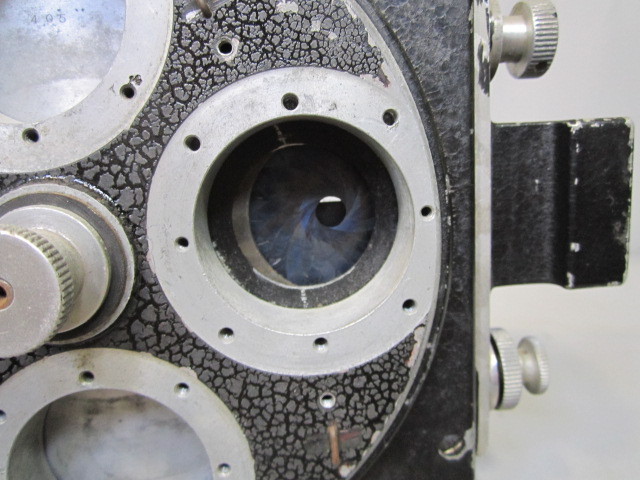 More photos of the built in Iris below are from Rudie's web site: Calkovsky Camera and Lenses. In this particular case, he was selling a Mitchell Standard L base and nothing else. Because of that, it allows excellent view of the Iris!
