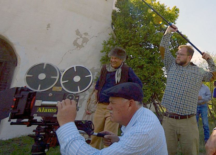 Here are some some photos from the production we filmed at Alamo Village back in March of this year, with a Mauer 16mm camera as a prop. The main actor who is portraying John Wayne is Jake Thorne, from North Carolina, who is very good. Happy Shahan is portrayed by his actual son, Tully Shahan. Scenes were filmed st Alamo Village.
