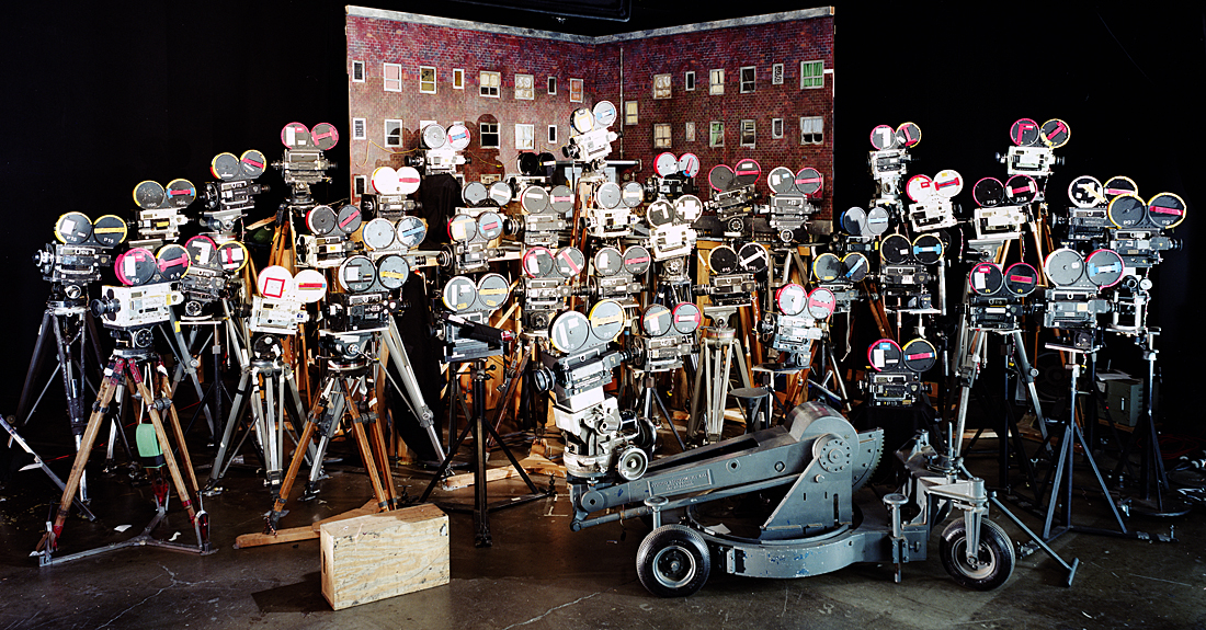 A photo of the last hurrah, 41 Mitchell cameras at Will Vinten Studios, in Portland, Oregon, at the close of production on the stop-motion series "The PJ's", in 2002.
