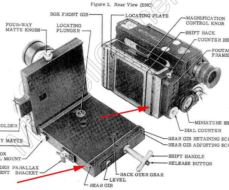 Good day. This is a real find. If a major camera department had to have just two special tools to maintain a Mitchell it would be a machinist lathe and one of these little buggers. The Gib Rails themselves can be adjusted to and throw or "aligned" with tiny screws. The actual camera with the movement mechanism is then racked on to the L base. The slightest variation in perfect alignment will result in the focal plane being out of focus. Whilst It might take a critical eye to notice such a variance it is still an annoyance, what? But when your product goal is a crystal clear projected image, it can be a problem when perfection is the goal of the day.
