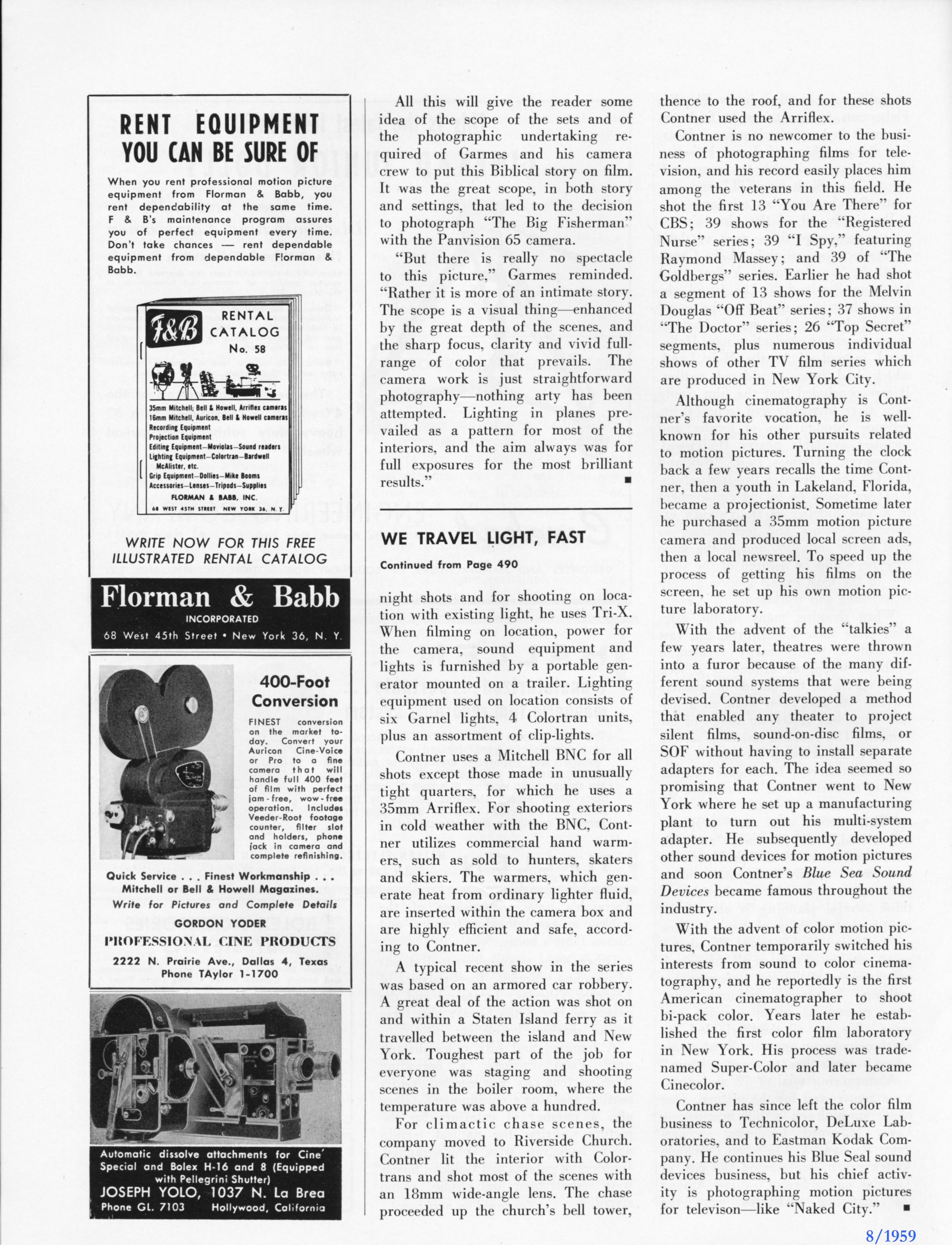 So, I'm wondering if this is scope235's camera in the picture I attached. This was in A.C. 8/1959. There was a 2 page article about J. Burgi Contner shooting "Naked City". I attached it in this post for your and Jeff's enjoyment.