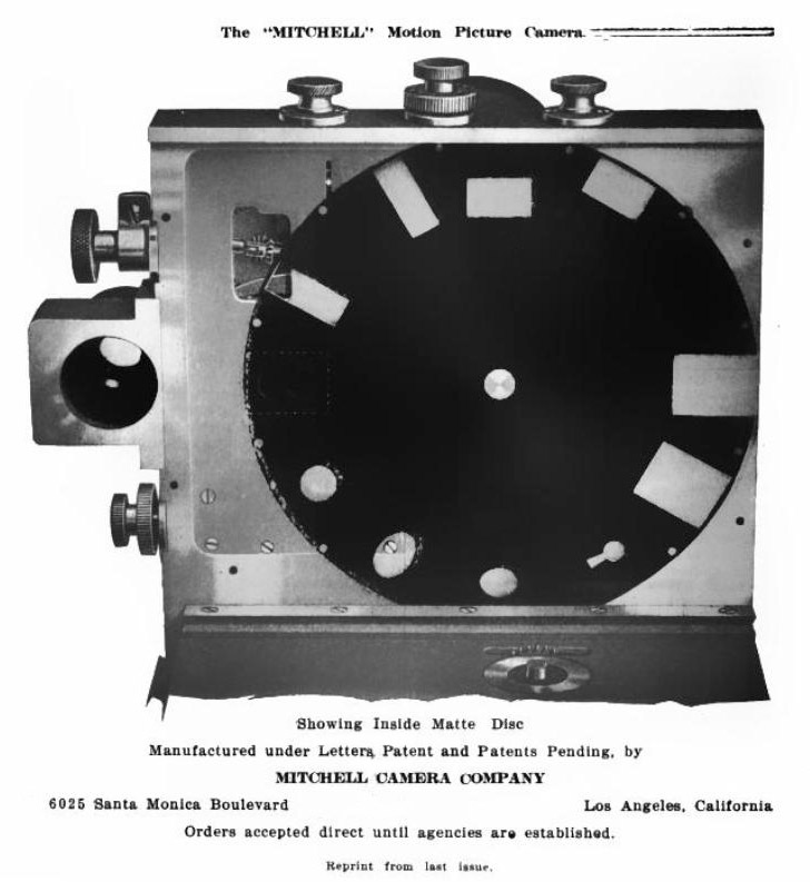 Greetings Mark! Since you mentioned the Mat Wheel appeared as an option in 1922 (good catch by the way), here are two ads from that time frame which depict the Mat Wheel which appeared in American Cinematographer. (where else?)