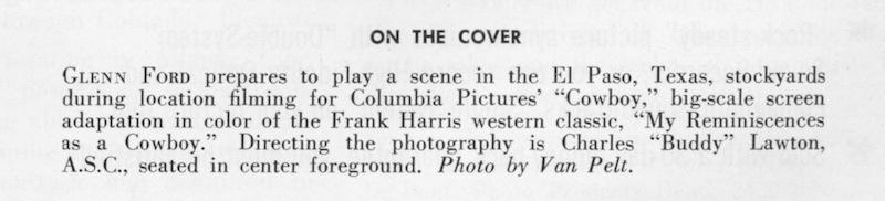 Some covers of American Cinematographer magazines. I added the "ON THE COVER" description from the index page to give information as to who the players are in the cover picture, what the production is. They always list the Director of Photography.