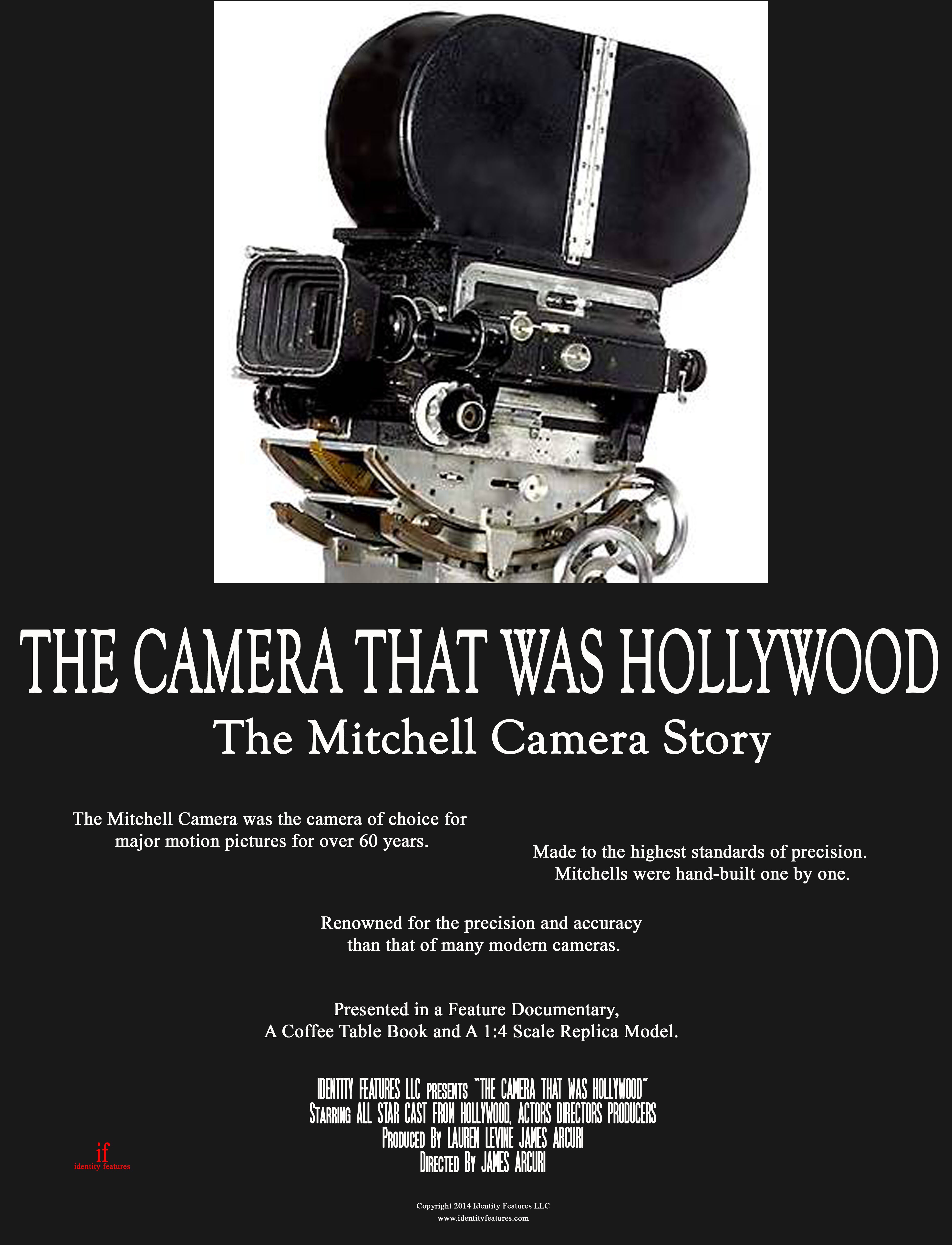 I ran across an interesting website the other day, a production company, Identity Features, is working on a documentary "The Camera That Was Hollywood"! Yes, it's about the Mitchell camera. They are planning a companion "coffee table" book and even a quarter scale model of a camera! I contacted the producer, James Arcuri. Apparently he was interested in cameras since he was a kid, as many of us. The project was on the back burner but he is now getting back to it, so he is trying to find funding. Apparently Kodak is willing to donate film, if he films this, as opposed to acquiring footage digitally. James plans on obtaining a BNC to film it, of course. The book/documentary/model set will be limited, I think he said an edition of 363, the amount of BNCs that were made. No price yet as it's still too early.